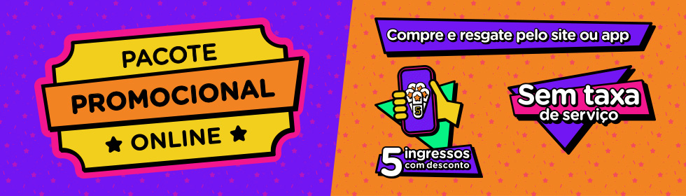 Um pacote de 5 ingressos de cinema com desconto, vendidos e resgatados exclusivamente ONLINE!